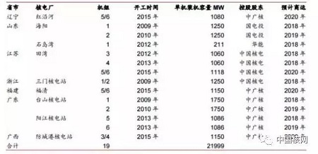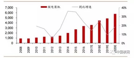 2018-2020年核电或将迎来建设潮。根据国家核安全局数据,截至2017年11月20日,我国投入商业运行的核电机组有37台,累积装机容量约3581万千瓦;在建核电机组19台,累计装机容量2200万千瓦。我国核电装机容量占比仅为2%,距离2015年全球核电装机容量平均占比6.4%还有很大差距。在建19台核电机组在2020年前全部投运,届时核电装机容量达到5781万千瓦,基本完成5800万千瓦的装机目标。但是上述规划中还有3000万在建容量需要在2020年前开工,这就意味着未来三年内将开工建设30台百万机组核电站,平均每年开工建设10台。