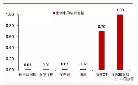![]() 图表3:核电辐射与日常生活辐射对比(毫希)