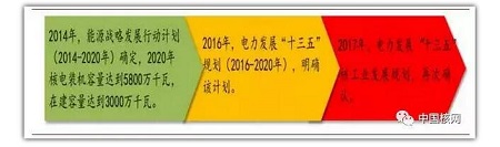 我国政府始终秉承安全高效发展核电的方针,在未来能源规划中对核电提出了较高的目标,且近几年的能源政策中核电规划始终保持一致。根据近年来陆续发布的《能源发展战略行动计划(2014-2020年)》、《电力发展“十三五”规划》及《“十三五”核工业发展规划》等文件的规划目标,到2020年,核电装机容量达到5800万千瓦,在建容量达到3000万千瓦以上。坚持安全发展核电的原则,加大自主核电示范工程建设力度,着力打造核心竞争力,加快推进沿海核电项目建设。建成三门、海阳AP1000自主化依托项目,建设福建福清、广西防城港“华龙一号”示范工程。开工建设CAP1400示范工程等一批新的沿海核电工程。深入开展内陆核电研究论证和前期准备工作。认真做好核电厂址资源保护工作。