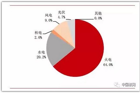 ![]() 图表2:2016年全国各电源发电量占比(%)