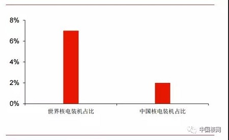 ![]() 图表7:2016中国与全球核电装机占比(%)